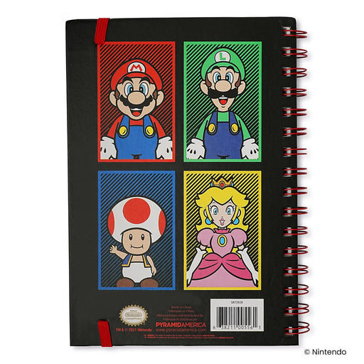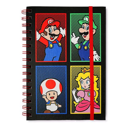 Super Mario 4 Color Spiral Notebook With Elastic Closure