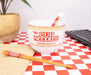 Inspired by the instantly recognizable design of Cup Noodles, this themed ramen bowl proudly features the classic red logo and familiar slogan, "Much More Than Soup." The bold design is a nod to the beloved brand that has fueled late-night study sessions, college dorm feasts, and cozy dinners for decades.