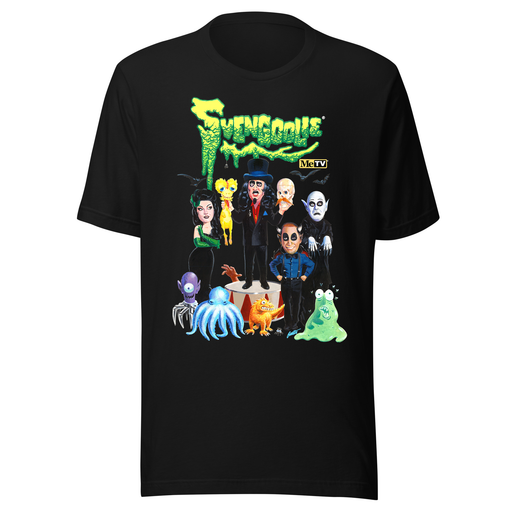 Original price $24.95 - Original price $28.95Original price$24.95 - $28.95$24.95 - $28.95Current price $24.95| /Your favorite MeTV® horror host, Svengoolie®, is in the center with a bunch of his friends in this design featuring Kerwyn™, Nostalgiaferatoo™, Gwe...