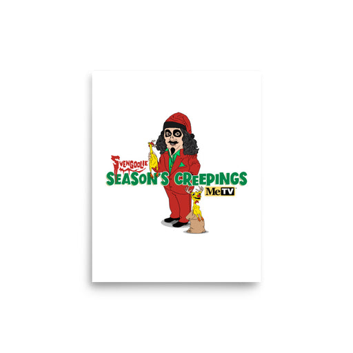 Original price $14.95 - Original price $34.95Original price$14.95 - $34.95$14.95 - $34.95Current price $14.95| /This holiday design features an illustrated Sventa Claus™ and Kerwyn™ wishing you “Season’s Creepings!” The design includes an official Svengoolie®...